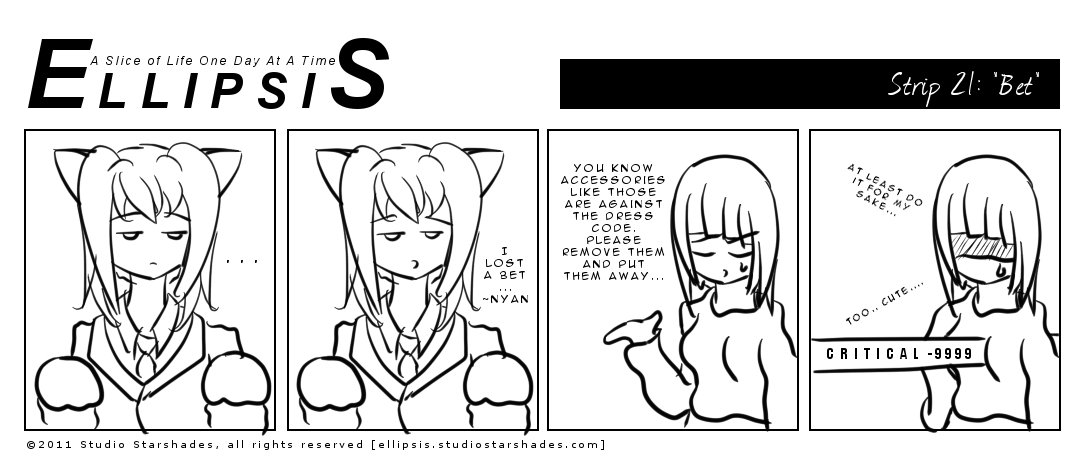 Cute nekomimi (cat ear) Maia is cute. At least, to Madoka-sensei, she is. I guess catgirls are (one of) her weakness(es)? "Nyan" is the Japanese onomatopoeia for a cat's meow.
