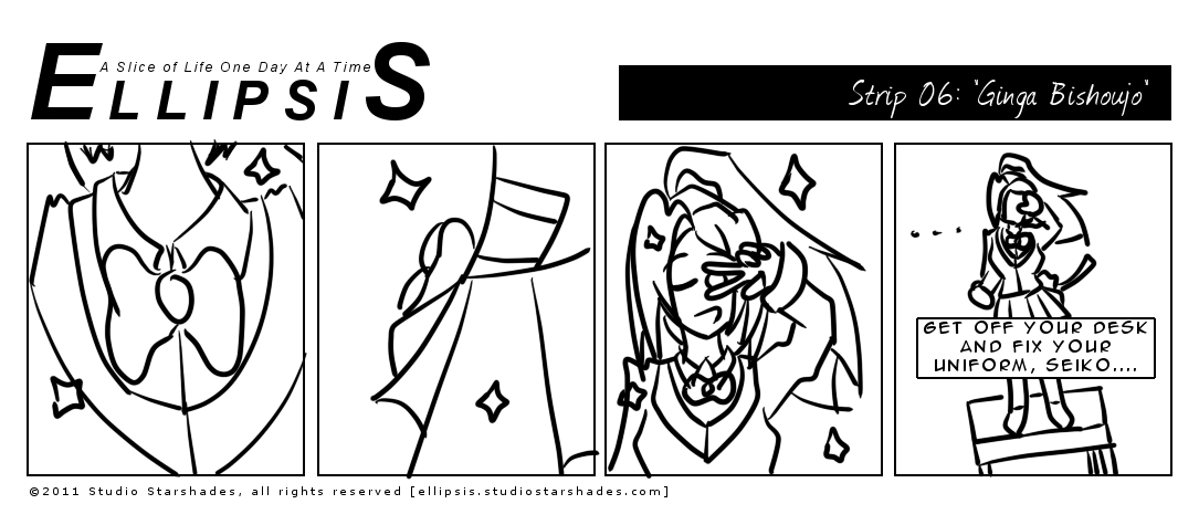 I guess Unseen Teacher isn't a Star Driver: Kagayaki no Takuto fan. Oh, and that's a Sailor Moon-esque ribbon on the back of Seiko's skirt. She's also barefoot.