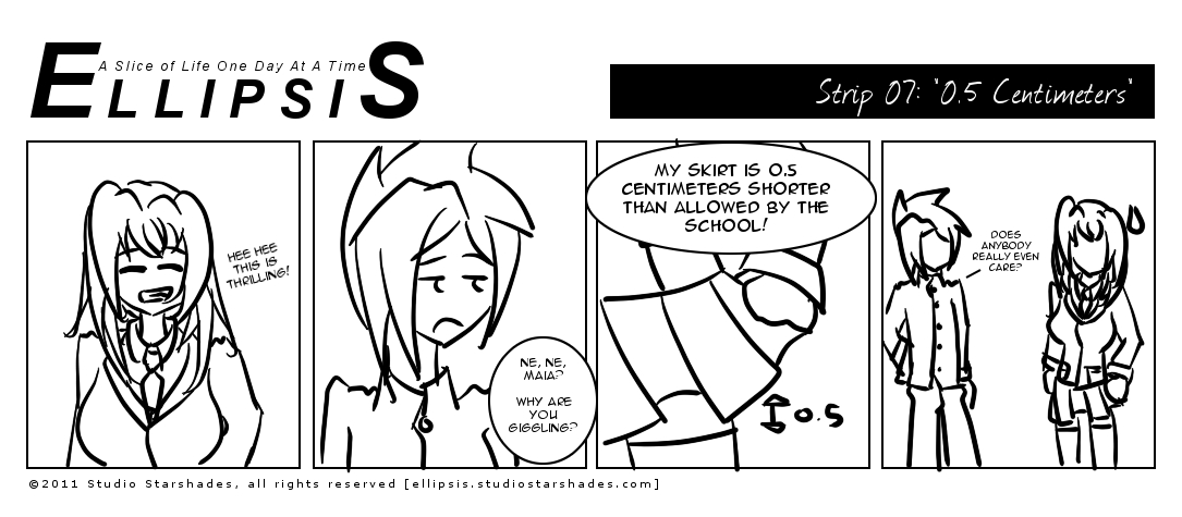 Yes, I am aware that many Japanese schools are quite strict about skirt length but it seems this particular one isn't so much. That, or the school officials are all distracted by Maia's fleshy assets.